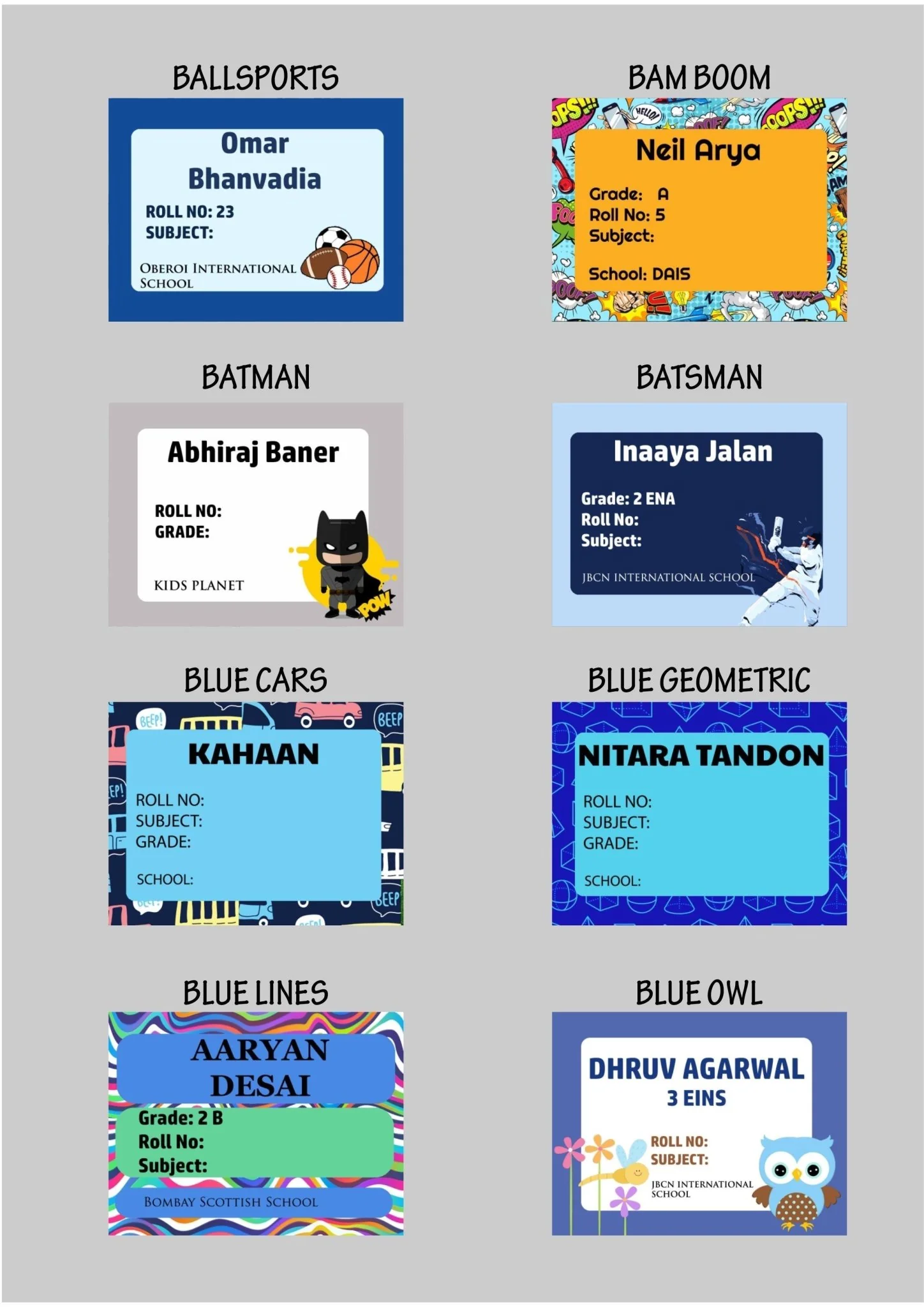 Personalization Options: We can print the full name of the child, grade, division, roll number and school name on these school book stickers and name slips.Â