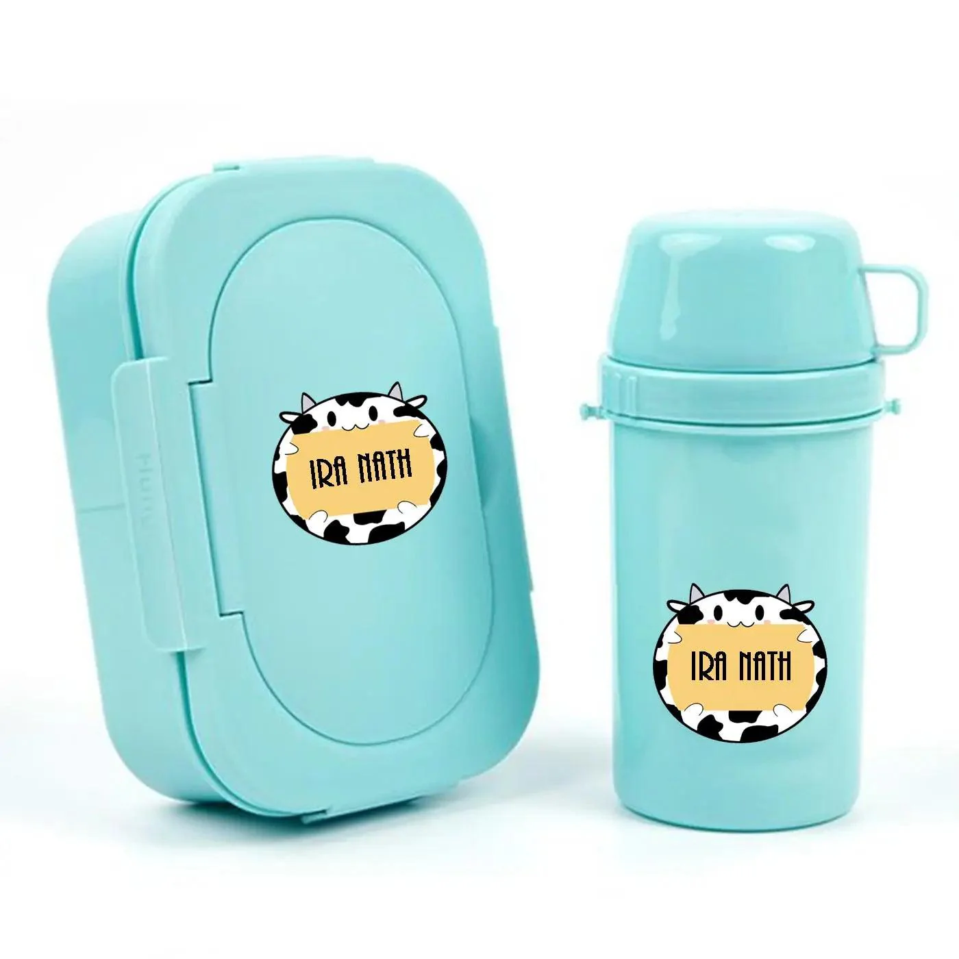 25 personalized custom shape waterproof labels that exude adorable charm. These delightful stickers in a cow shaped design will look very cute once affixed. These are perfect for any kind of kids and child items.